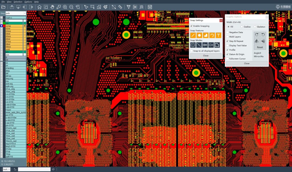 OpenCAM是由無錫東領智能科技股份有限公司開發的一款輕量級PCB CAM圖形查看器?;贑++開發,具有超高的圖形顯示效率,完全支持ODB++8.1格式。